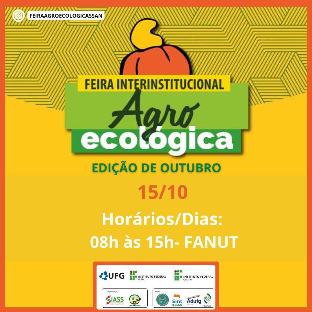 No dia 15 de outubro, das 08h às 15h, acontece na FANUT (Faculdade de Nutrição da UFG) mais uma edição da Feira Interinstitucional Agroecológica. O evento reúne produtores locais, estudantes e a comunidade acadêmica em um espaço de integração e valorização da agricultura familiar, alimentos orgânicos e práticas sustentáveis.